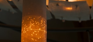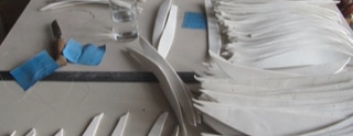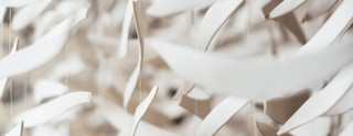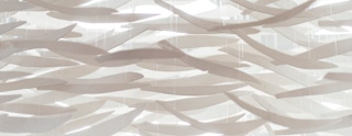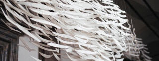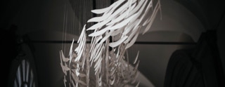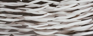 Un grand mobile constitué de deux mille poissons en porcelaine. Il devait être placé dans un restaurant de poissons, place Sainte Catherine à Bruxelles. Accroché à un plafond sombre et éclairé latéralement. Cette grande pièce attend toujours d’être placée.