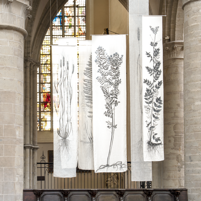J’ai réalisé une série de dessins géants insérés dans les travées de la cathédrale.