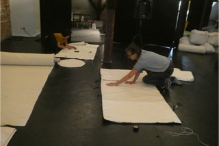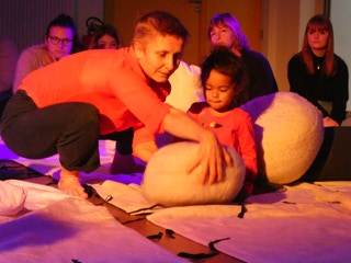 Conception et réalisation de la scénographie et du décor de "Territoires sonores" de la compagnie "murmures et chocolats". Claire Goldfard (violoncelle) et Caroline Cornélis (danse), interprêtent "in C" de Terry Riley pour des enfants de six à quatorze mois. Un grand tapis modulable, des coussins-galets en laine, un lieu doux pour poser les bébés et leur permettre de rentrer dans un univers sonore magique.